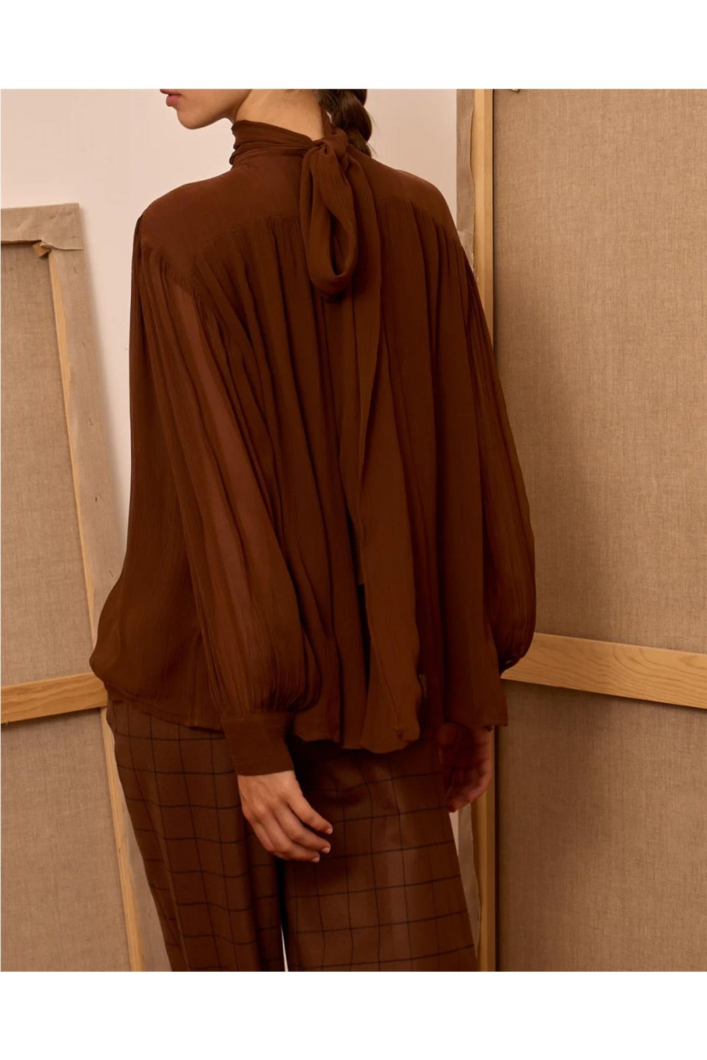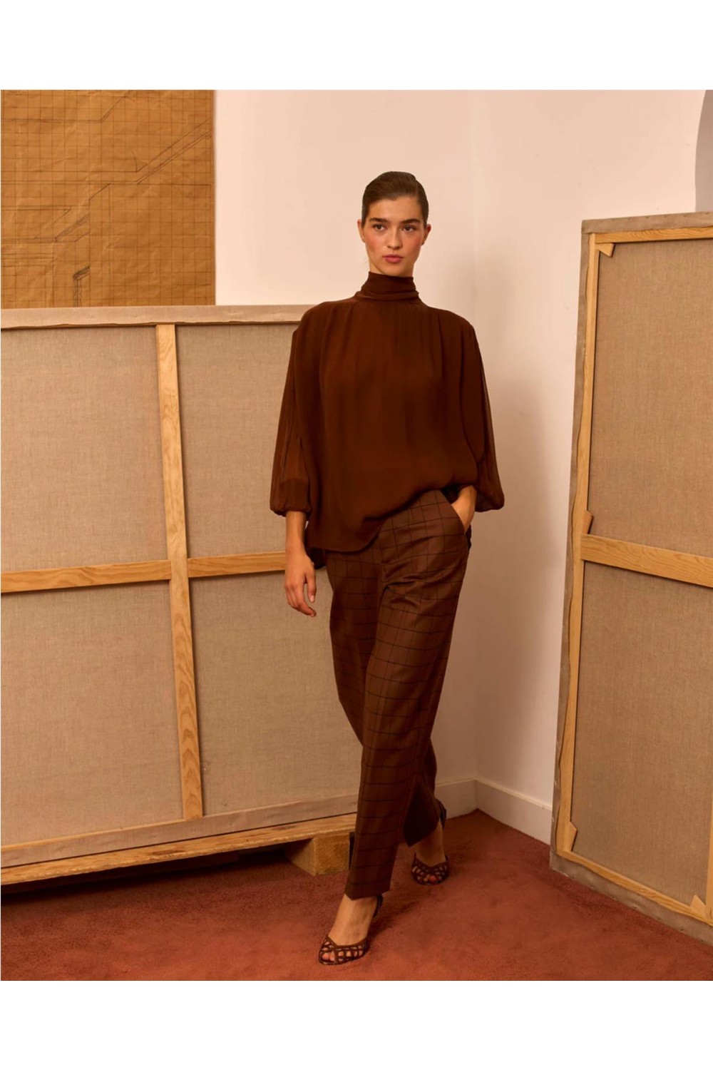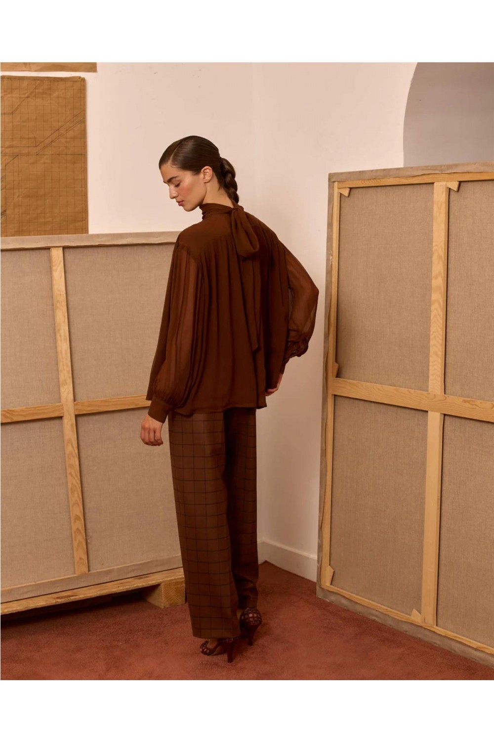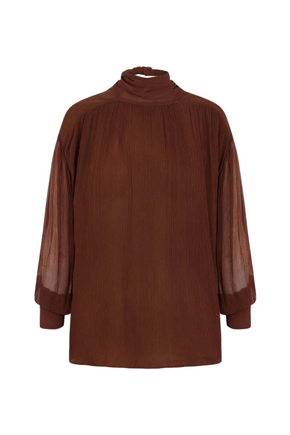 Blusa de mujer lazada Is Coming cuello alto lazada marrón 125.BLU.1253