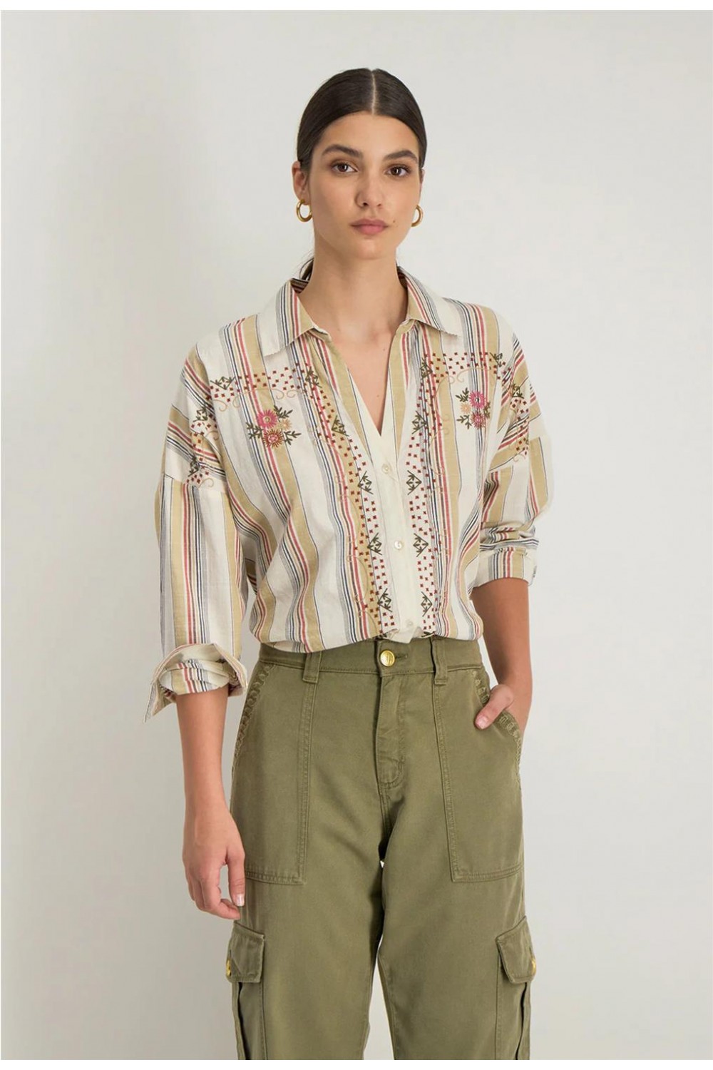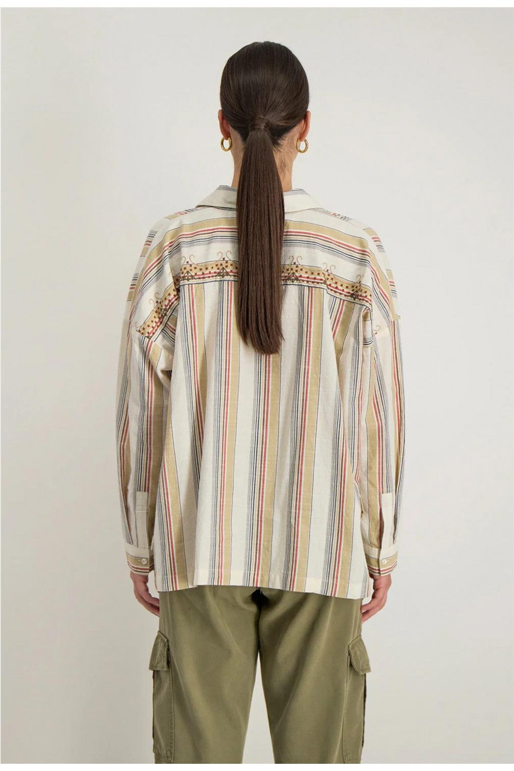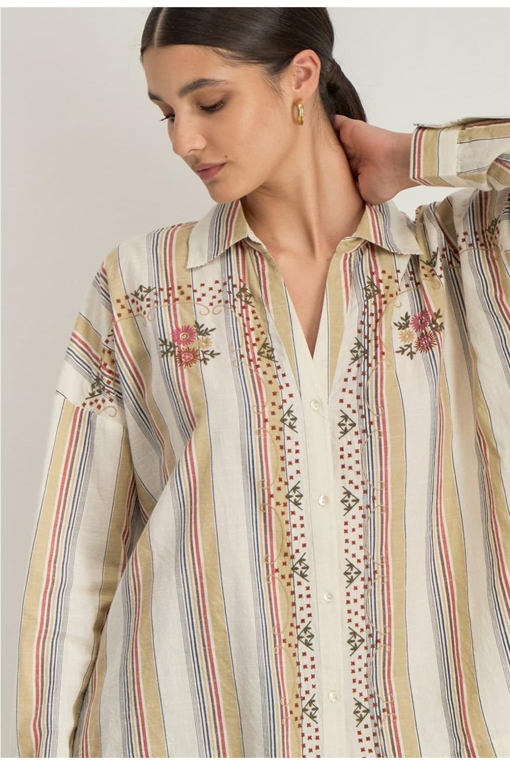 Camisa de mujer SOLARA Stella Forest bohemia boxy rayas sable H25CH028