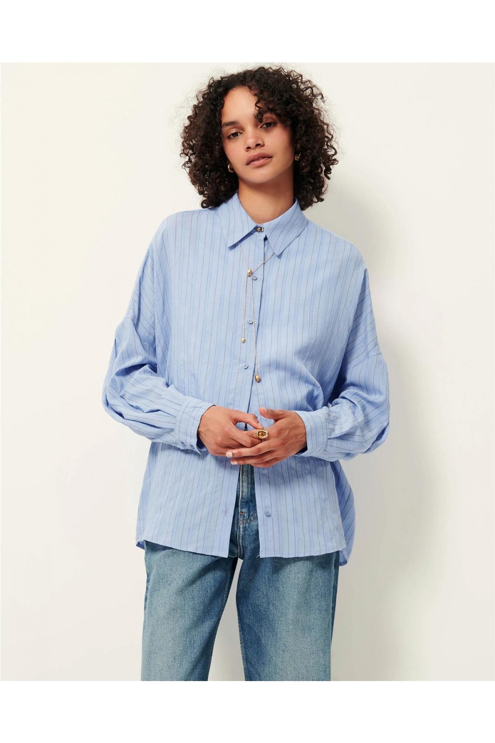 Camisa de mujer Dazik Sessun popelina viscosa suave azul moderno DAZIK