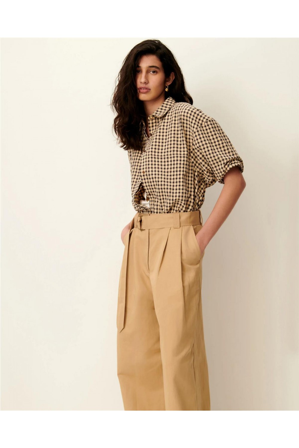 Camisa de mujer Florentina Sessun manga corta gofrado arena/negro FLORENTINA