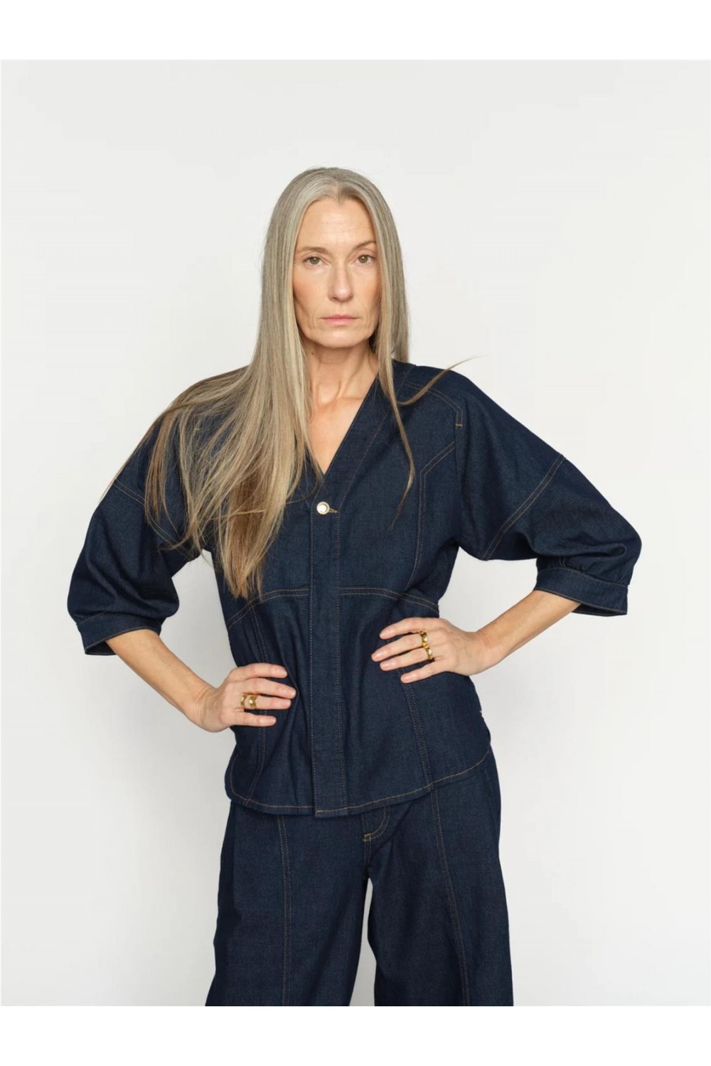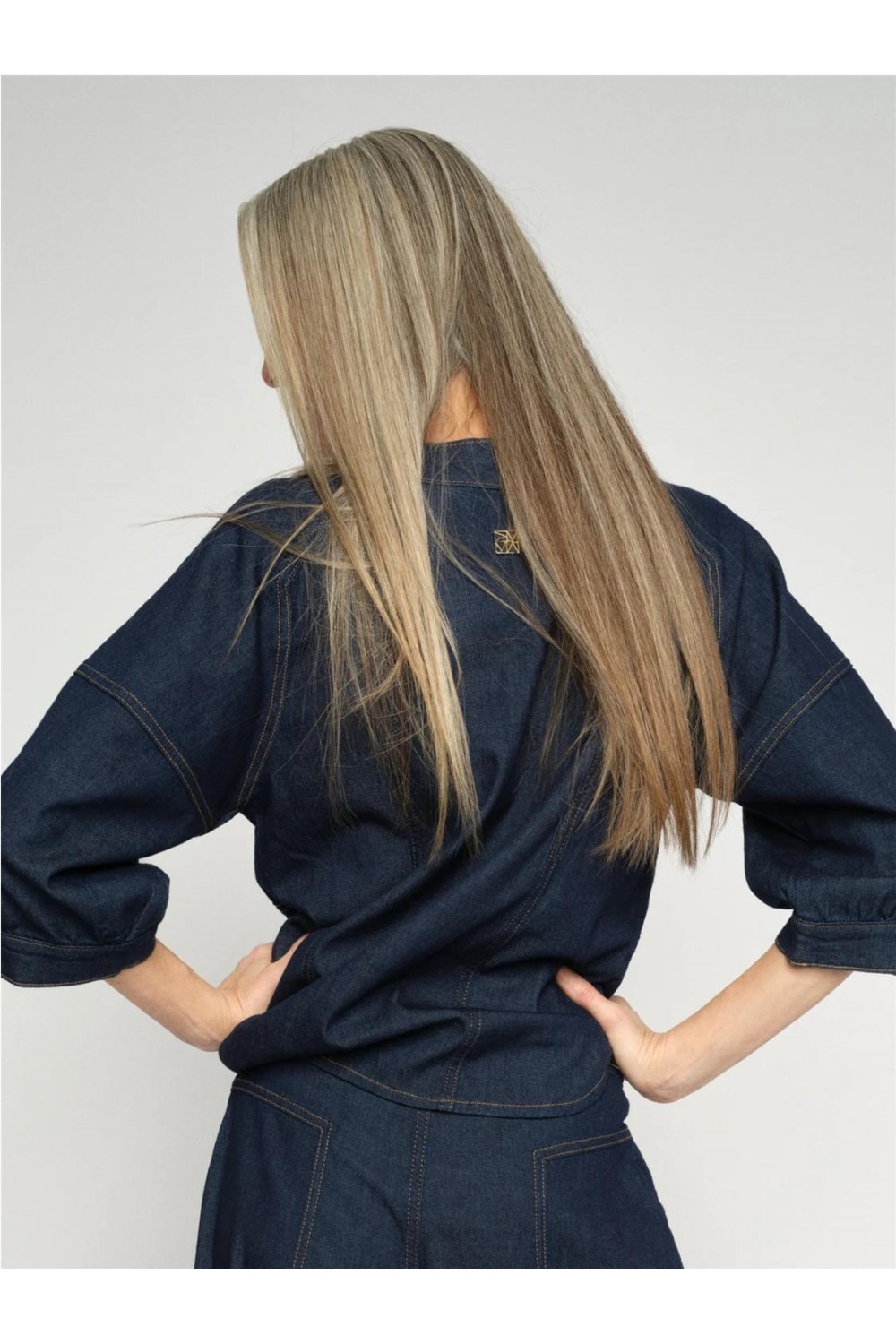 Camisa de mujer MMBari MOS MOSH inspiración vaquera paneles azul oscuro 178490