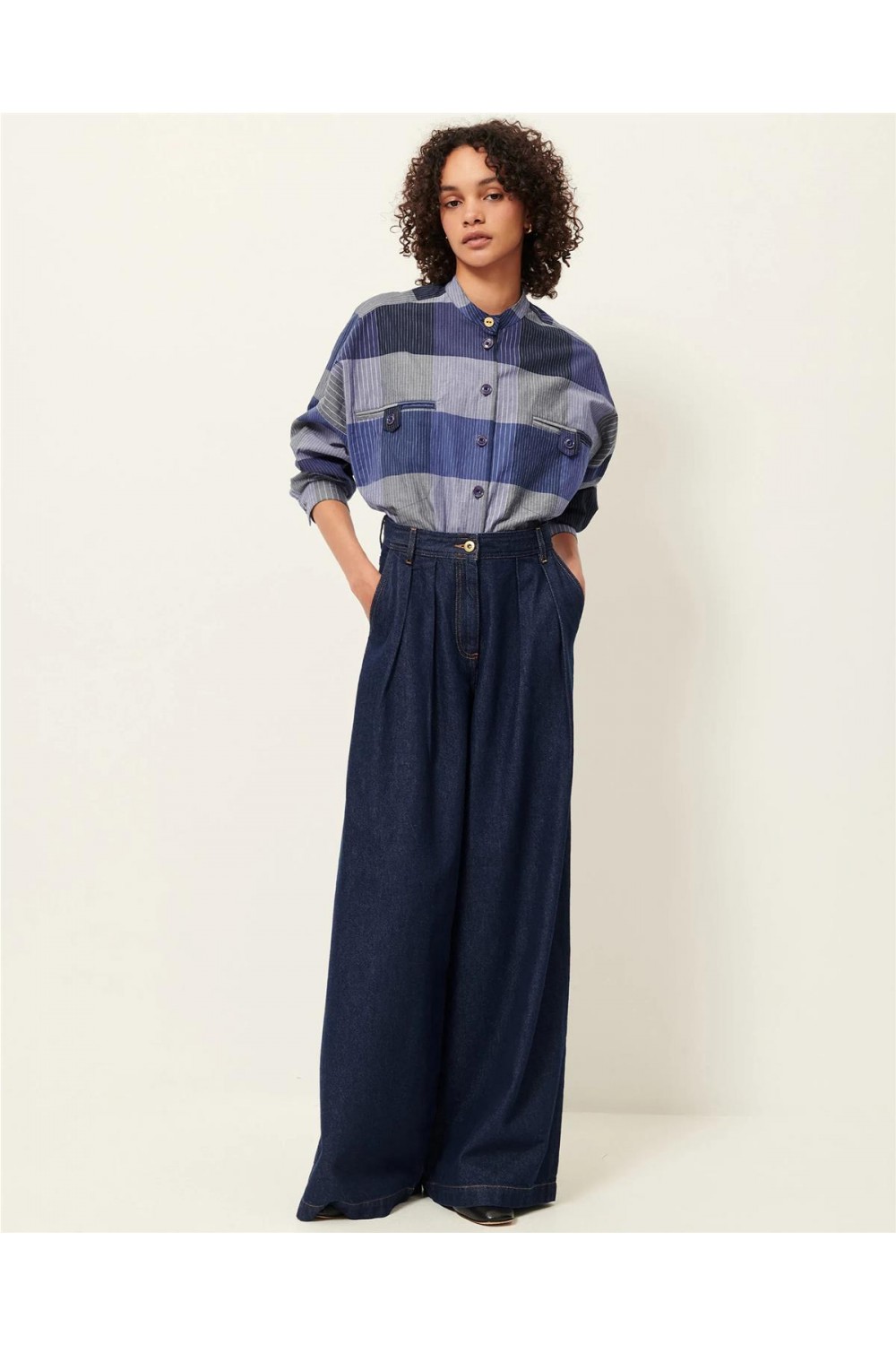 Camisa de mujer Orregia Sessun cuadros madras rayas azul bloo ORREGIA
