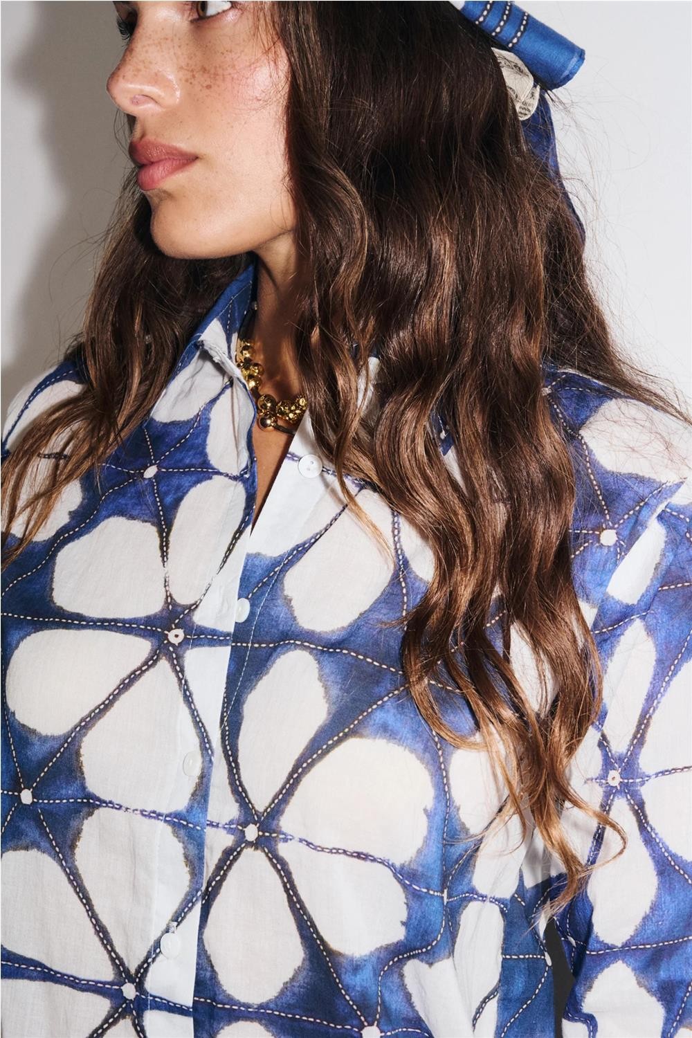 Camisa de mujer LOTUS Stella Forest jacquard motivo abstracto azul indigo E26CH020