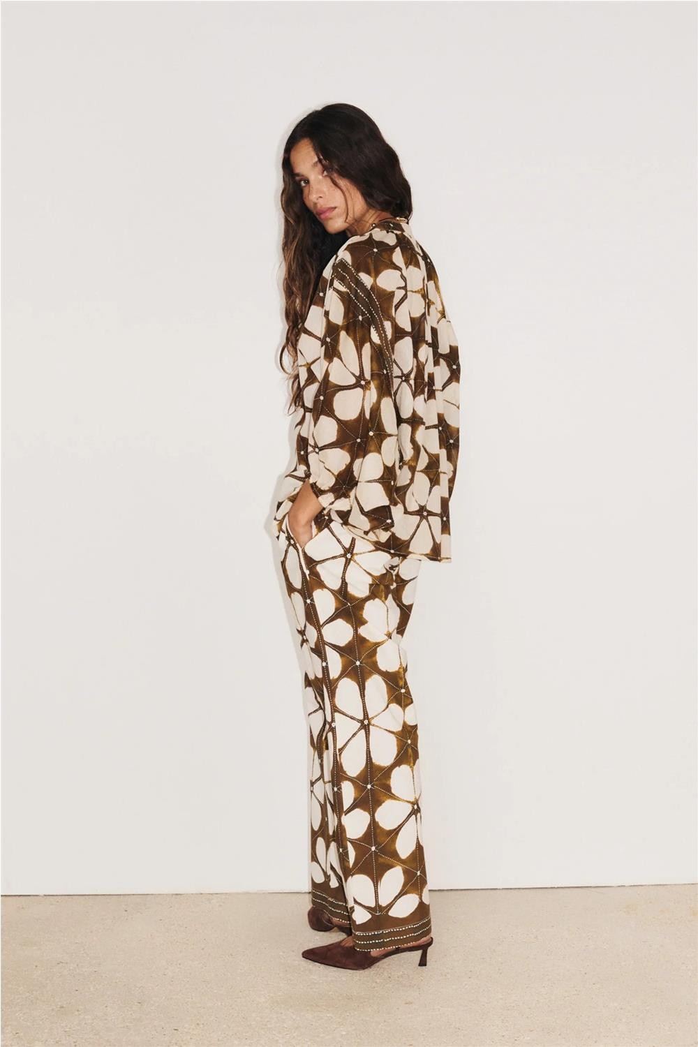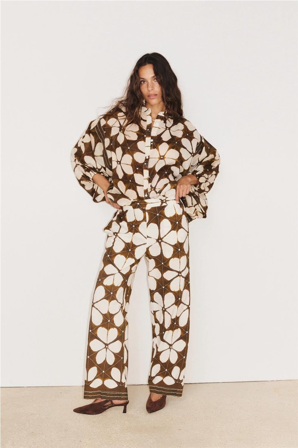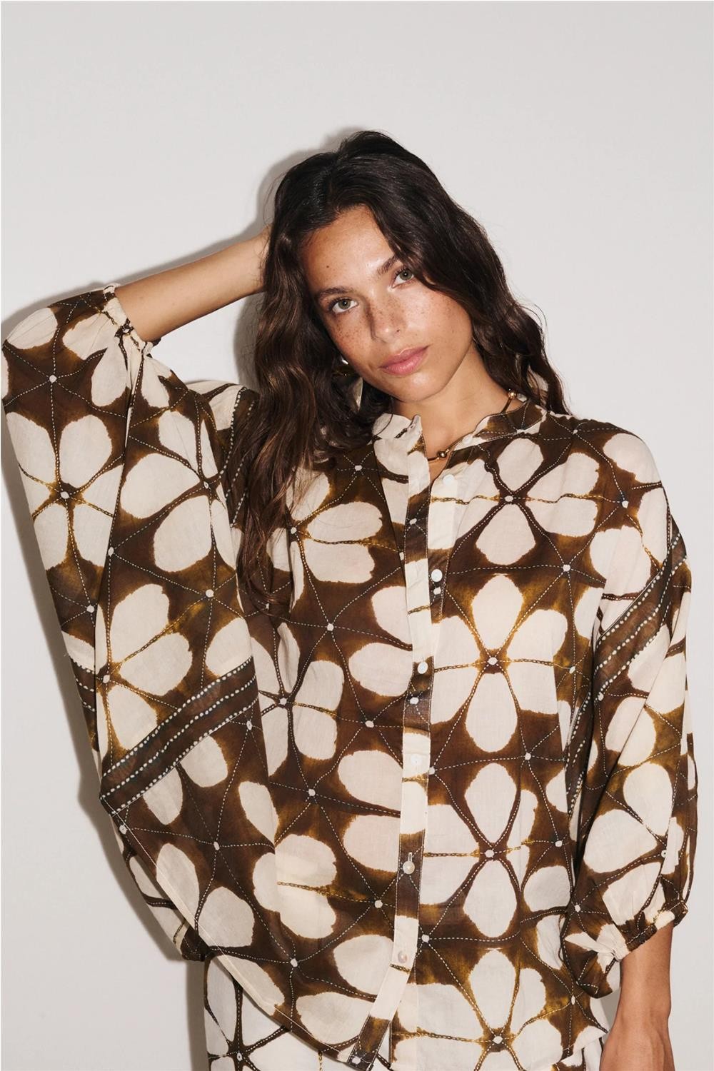 Camisa de mujer LOTUS Stella Forest gasa mangas murciélago marrón E26CH038