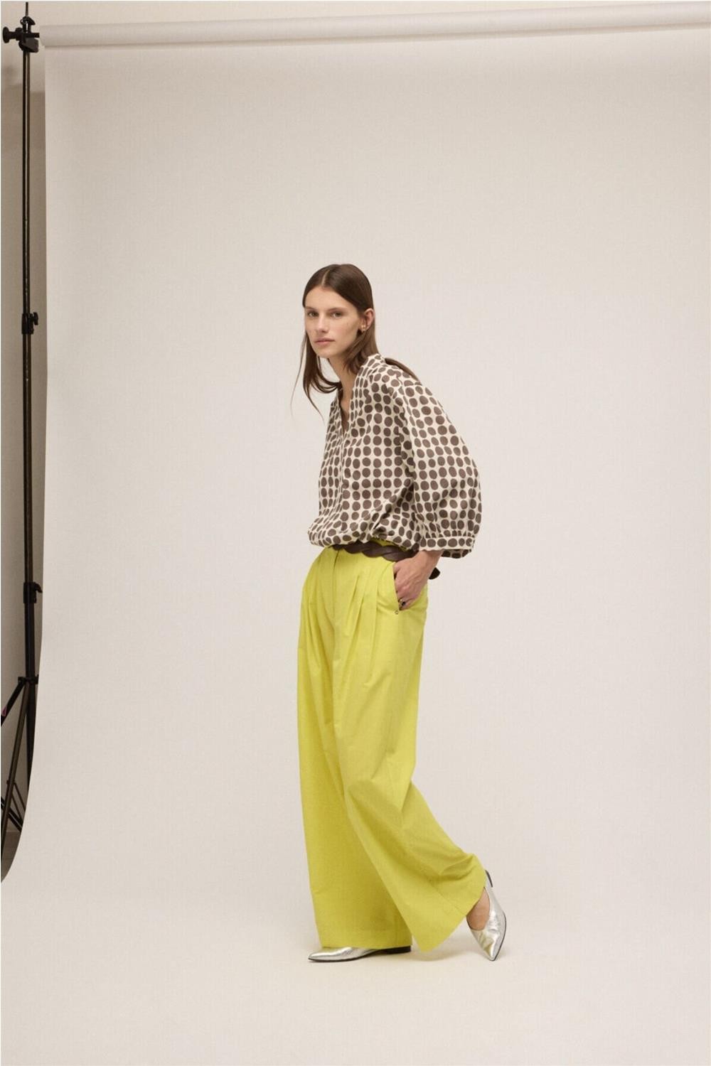 Esta blusa de algodón destaca por su escote en pico y un clásico estampado de lunares que nunca pasa de moda. Incorpora un práctico cordón en la cintura que permite ajustar la prenda al gusto, creando un favorecedor efecto fruncido. Su tejido natural garantiza una transpirabilidad óptima y un confort total durante todo el día. Gracias a su diseño ligero y femenino, es una pieza ideal para aportar un toque alegre y sofisticado a cualquier conjunto cotidiano de temporada. Composición: 100% algodón