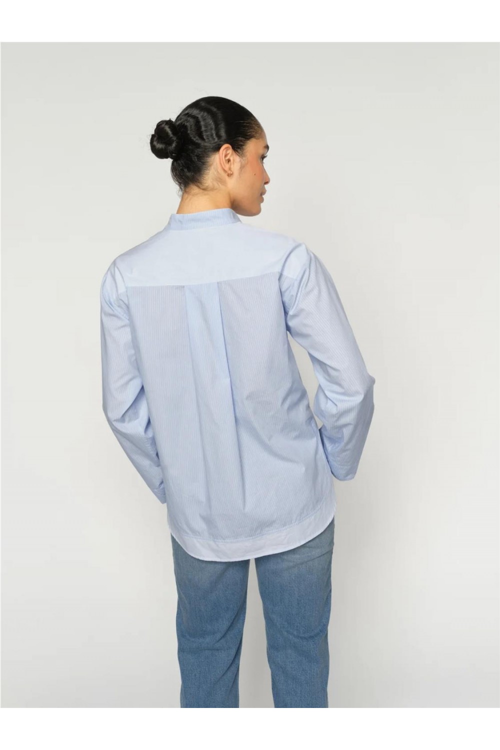 Esta camisa de diseño clásico con un toque moderno destaca por su cuello de banda y una silueta relajada muy favorecedora. Confeccionada en algodón fresco y de tacto impecable, incorpora un práctico bolsillo delantero y una tapeta de botones oculta. Es la prenda perfecta para elevar con naturalidad tanto estilismos de oficina como looks más informales, ofreciendo comodidad y un aire sofisticado a cualquier conjunto. Composición: 100% Algodón.