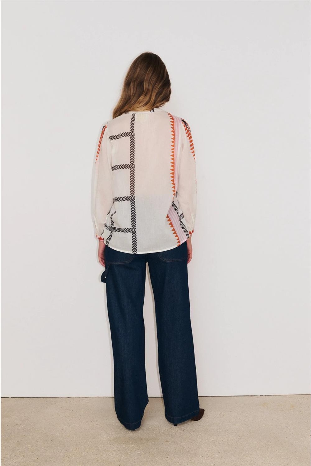 Camisa de mujer SOLENE Stella Forest estampado patchwork mandarin crudo E26CH018