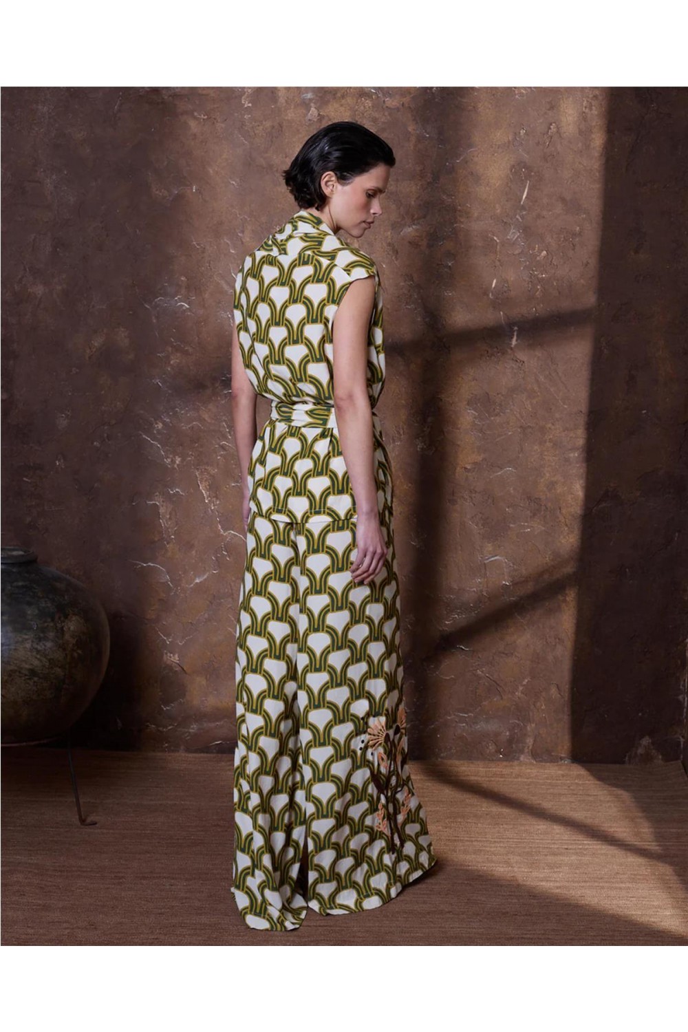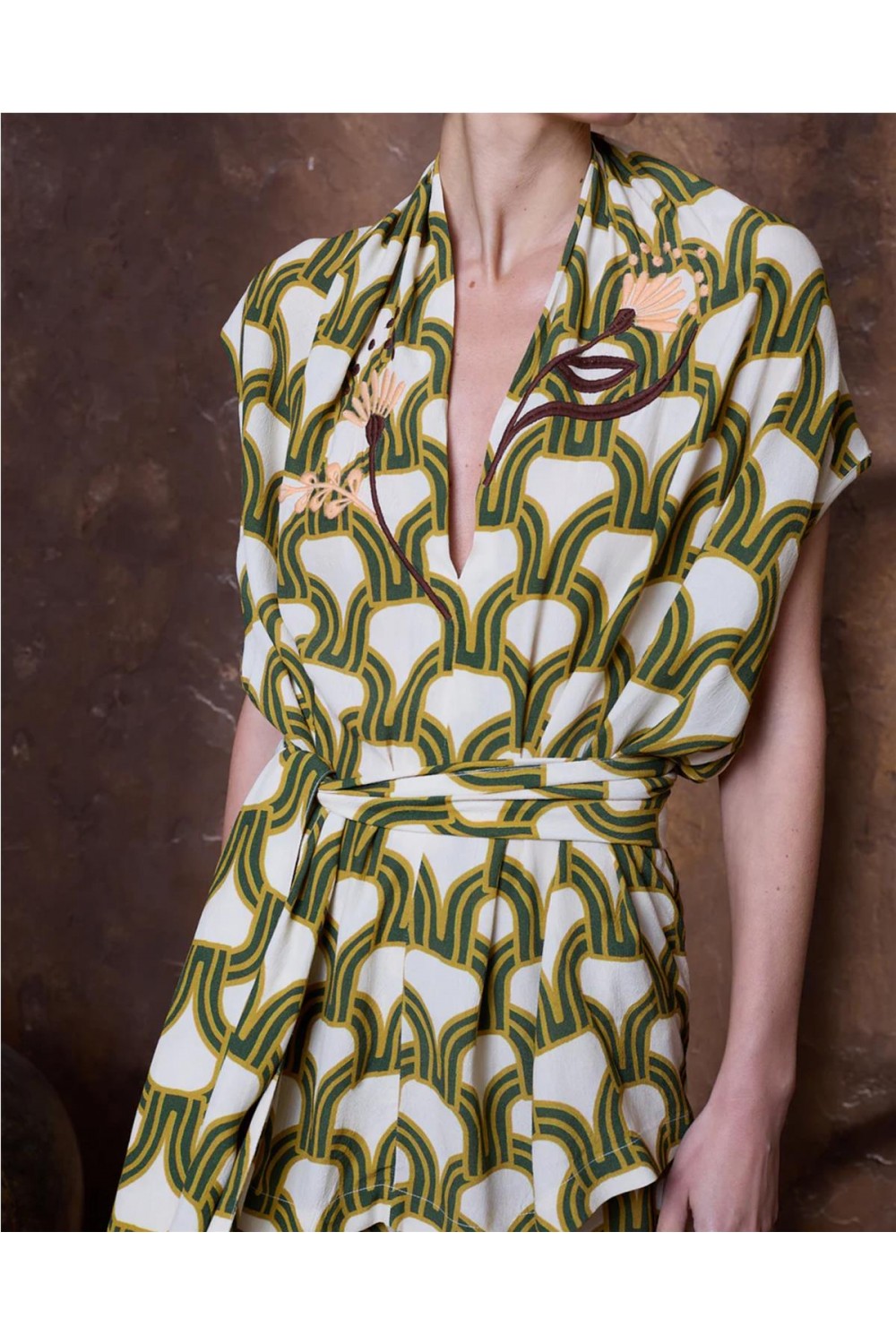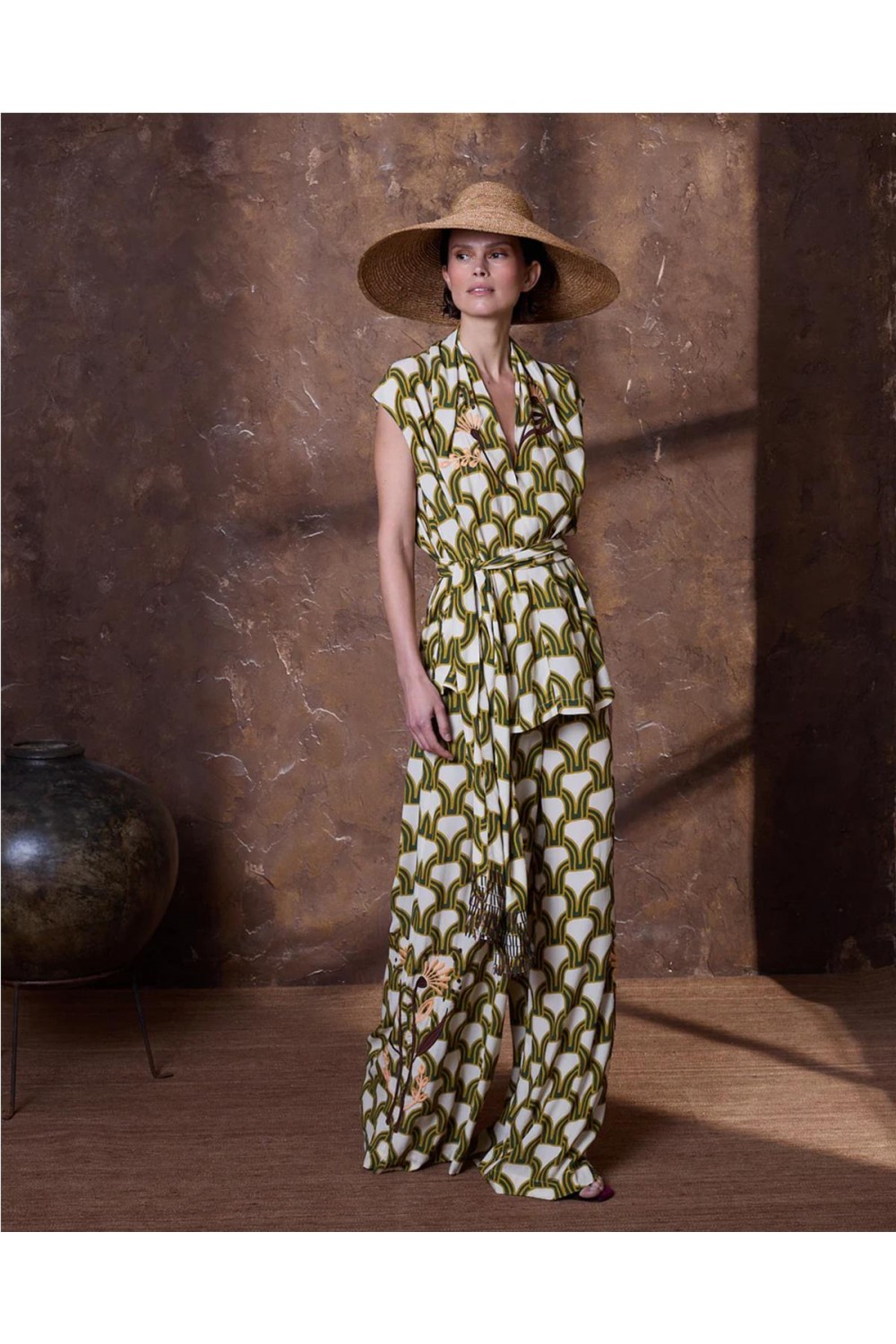 Blusa de mujer Top Is Coming viscosa estampado geométrico verde 427.BLU.4274