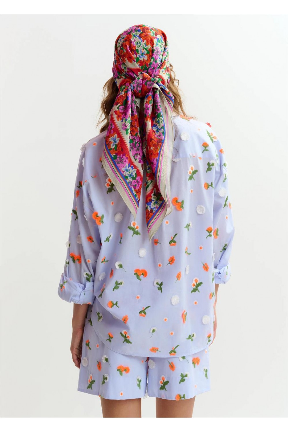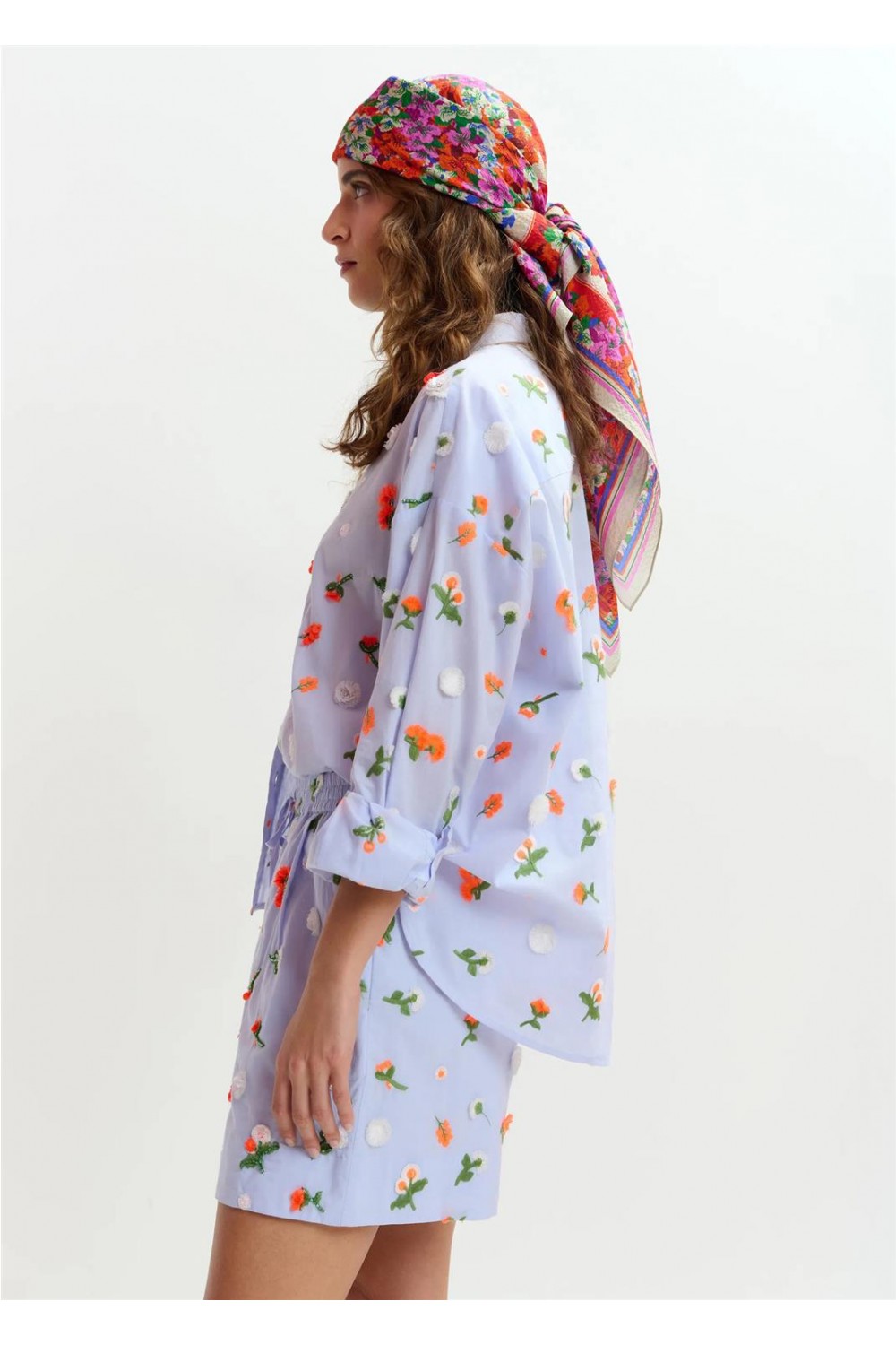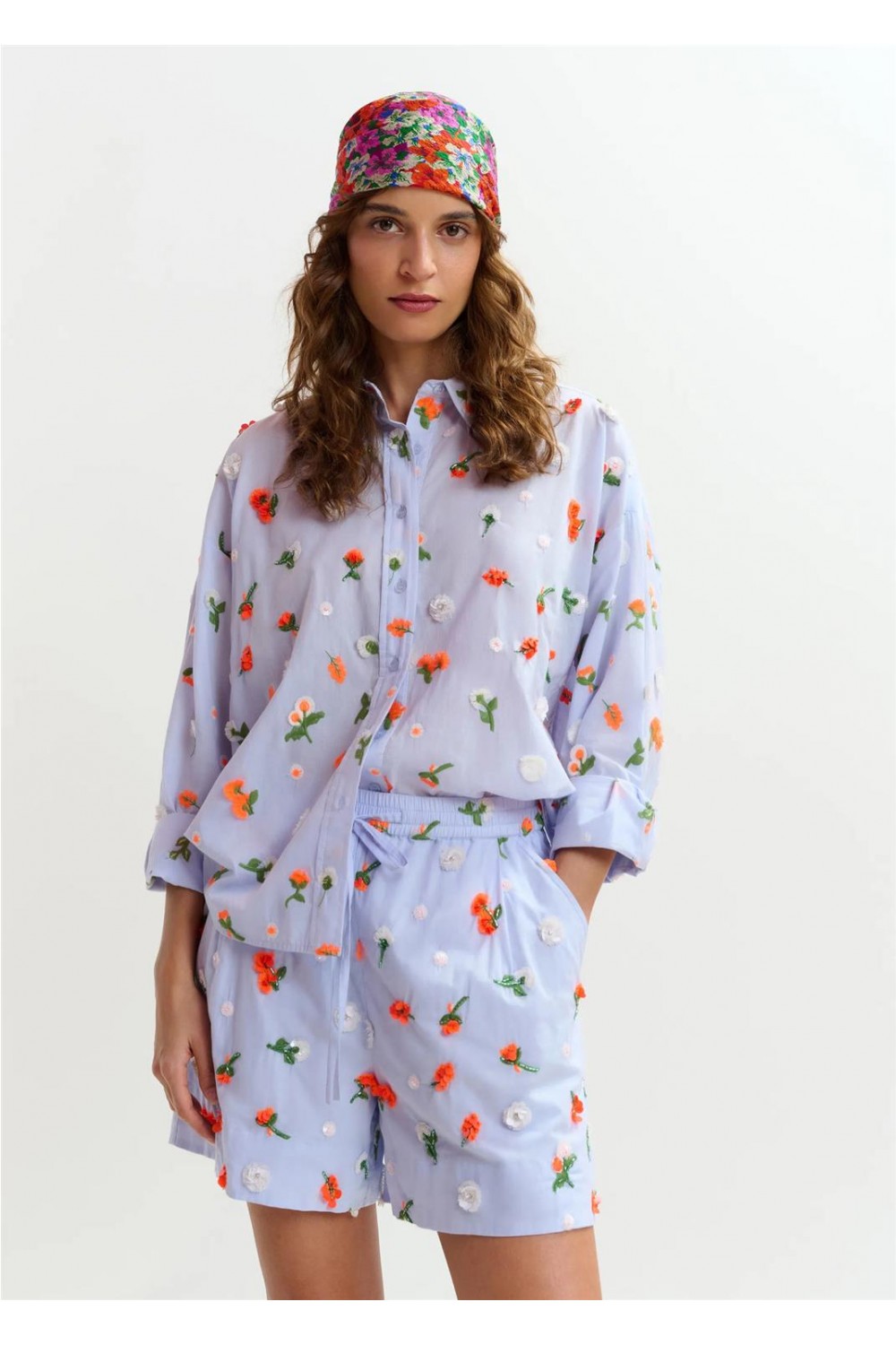 Esta camisa destaca por su confección en algodón con un diseño de corte boxy y hombros caídos. Presenta un bajo redondeado, ligeramente más largo en la parte posterior, y un cierre de botones que aporta un acabado clásico. El diseño se eleva con bordados florales de lentejuelas, cuentas y strass, que añaden un sutil brillo y una textura sofisticada a esta prenda versátil. COMPOSICION 100% Algodón BORDADO 100% Poliéster LENTEJUELAS 100% Poliéster CUENTAS 100% Vidrio PEDRITAS 50% Latón, 50% Vidrio